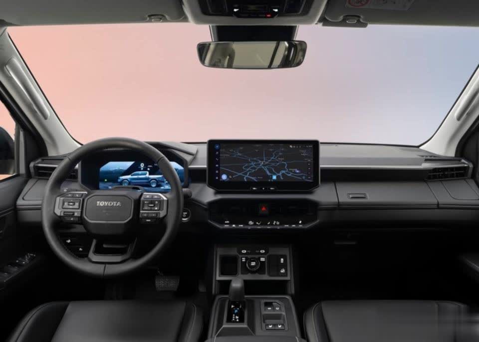来到车身侧面,维持经典皮卡轮廓,配备低风阻双色切削轮圈,货斗尾部印有“Beyond Zero BEV”专属标识,彰显电动化身份。车身尺寸方面,新车的长宽高分别为5320×1855×1800mm,轴距3085mm,双排座驾驶室布局兼顾驾乘空间与装载能力,涉水深度达700mm,可应对复杂积水路况。核心车身结构坚守硬核属性,采用非承载式车身结构,基于强化梯形车架打造,底盘刚性经针对性优化,配合重新设计的悬架系统与引擎脚,在保障越野性能的同时提升行驶舒适性。内饰更偏向实用主义,延续丰田新世代座舱风格,中控台采用三层设计,注重储物空间拓展鼎盛配资,配备12.3英寸中控屏与全液晶仪表,支持CarPlay互联功能。配置上兼顾实用与舒适,提供方向盘加热、电动座椅等配置,满足日常作业与短途出行需求。安全与辅助配置层面,搭载TSS 3.0智驾系统,配合车身稳定控制、倒车影像等功能,降低复杂路况驾驶难度。