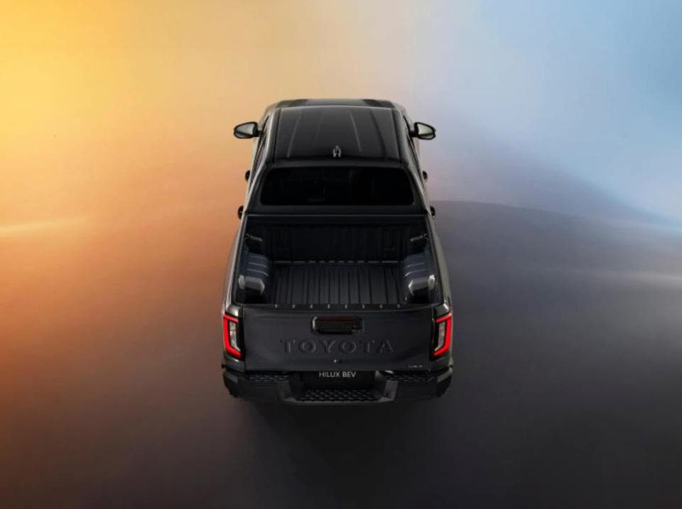 外观设计上,丰田Hilux纯电版在传承中适配电动化属性。前脸部位,取消传统进气格栅,为新能源标志性的封闭式处理,采用平滑空气动力学前面板,搭配贯穿式黑色饰条连接两侧大灯组,车头“TOYOTA”字样标识增强辨识度;此外,左翼子板处设置充电接口,明确其纯电身份。